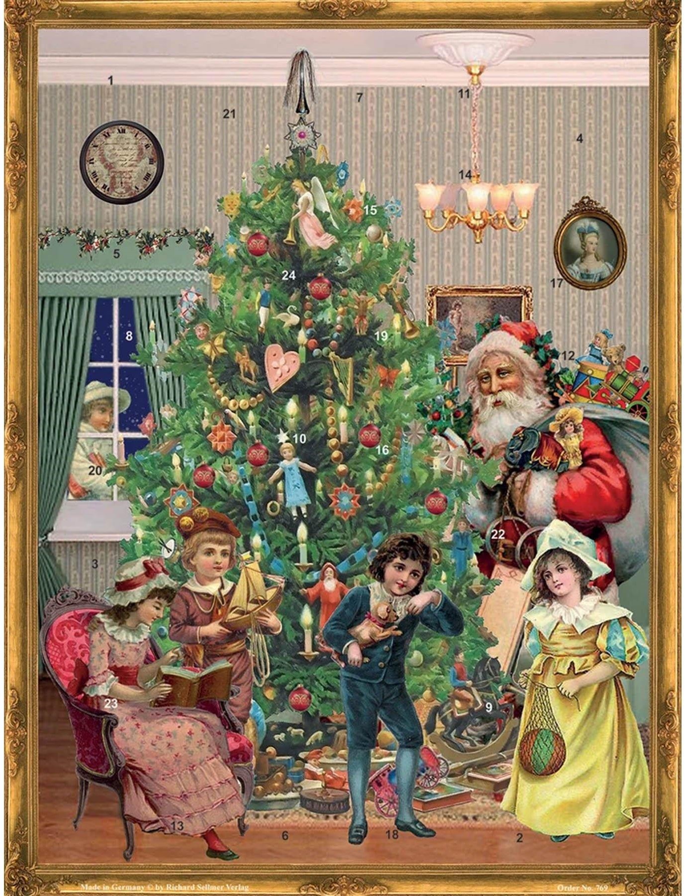Adventskalender med silverglitter. 24 luckor att öppna. Storlek: 26,5×35,5cm
