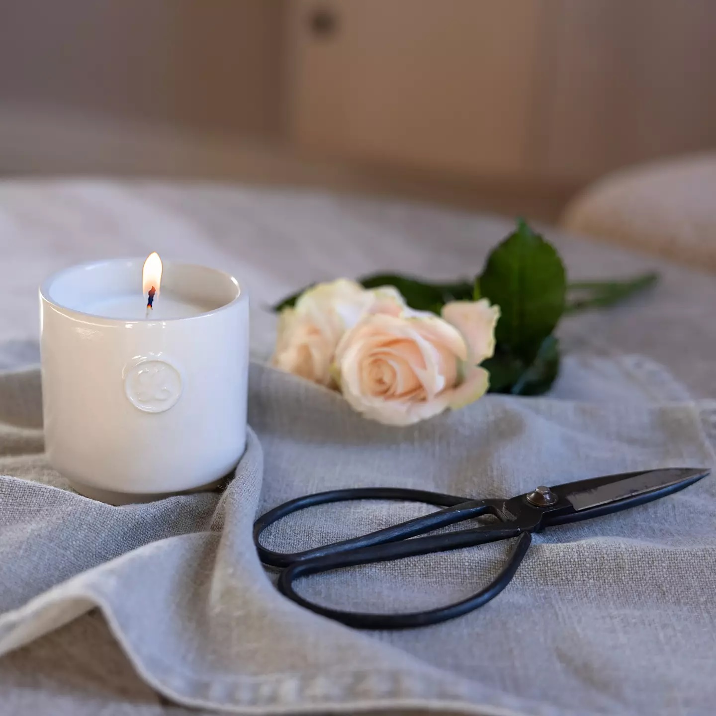 Den exklusiva doften är utvecklad i samarbete med ett franskt dofthus och kombinerar fräscha noter av bomullsblomma och ros med djupare, varma toner av väldoftande trä. Resultatet är en harmonisk och ombonad doft som skapar lugn och trivsel i hemmet.