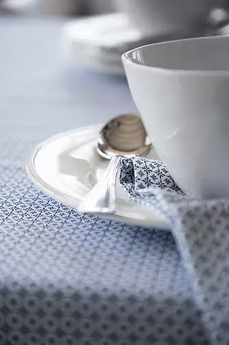Bordsduk, bomull, Destiny, Vit/Marinblå, Shyness