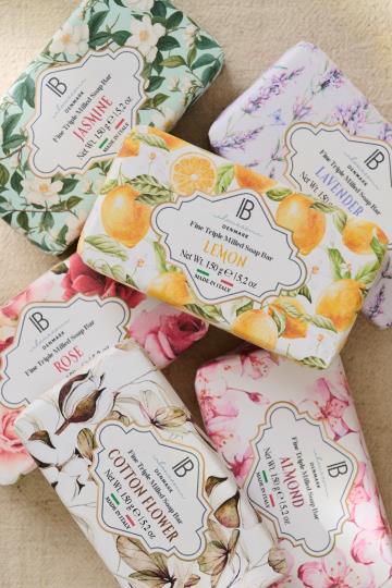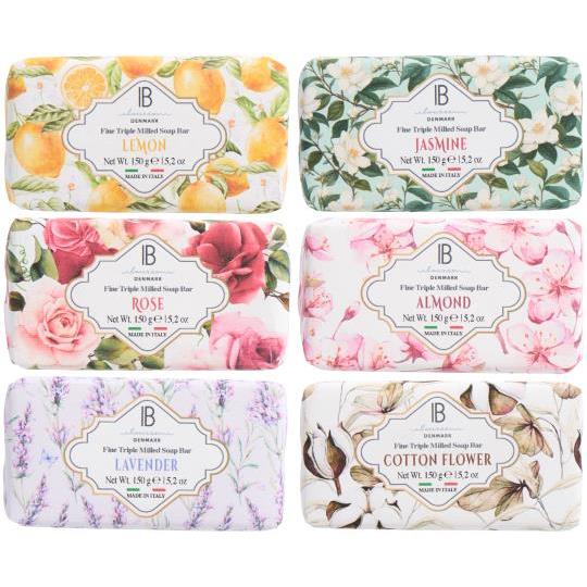 Fast dofttvål tillverkad i Italien och vackert inslagen i dekorativt papper. Tvålen finns i sex klassiska och omtyckta dofter – från friska citrusnoter till mjuka och romantiska blomdofter. En uppskattad detalj vid handfatet, som dekorativ gästtvål eller att lägga i linneskåp och garderob för en behaglig doft.