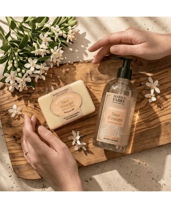 En mjuk och solig flytande Marseilletvål med doft av apelsinblom – en elegant, blommig och lätt söt doft som för tankarna till solvarma trädgårdar i södra Frankrike.
