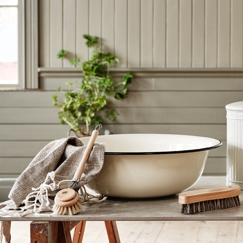 Stort handfat i klassisk, gammaldags stil av vit emalj. Använd baljan till ett avslappnande fotbad, som diskbalja i uteköket eller sommarstugan. En nostalgisk detalj som passar en klassisk, lantlig stil och stämning. Produkterna i kollektionen Emil’s Emalj håller hög kvalitet och tål långvarig användning.