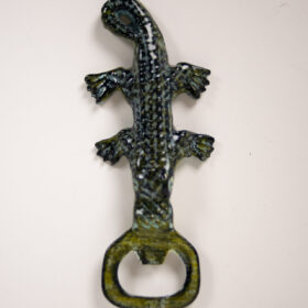En dekorativ kapsylöppnare formad som en alligator – en detalj som kombinerar funktion med personlighet. Den gröntonade, mönstrade ytan ger ett levande uttryck och gör den till ett roligt inslag i köket, på barvagnen eller vid sommarens grillkvällar.