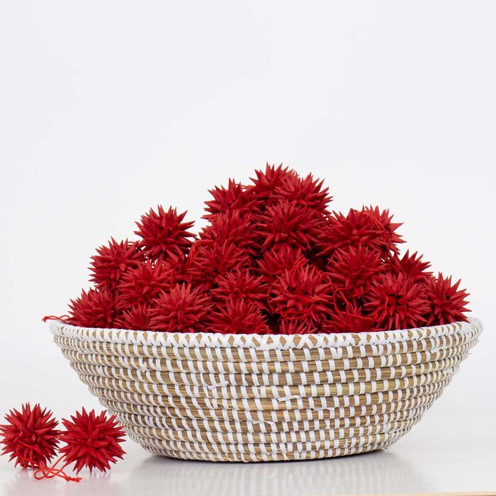 Vackert pappershantverk i en fin liten prickig låda. Varje låda innehåller 6 st 4 cm stora stjärnor. Papperstillverkningen skapar angelägen sysselsättning för framförallt kvinnor på landsbygden.