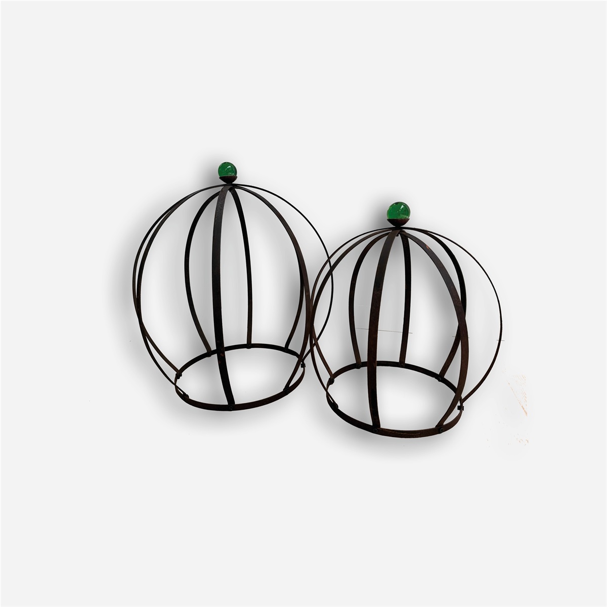 Ett dekorativt klot i kraftigt järn som både skyddar och lyfter fram växterna. Den luftiga formen ramar in planteringen och skapar ett vackert blickfång samtidigt som den ger stöd åt växande grönska.