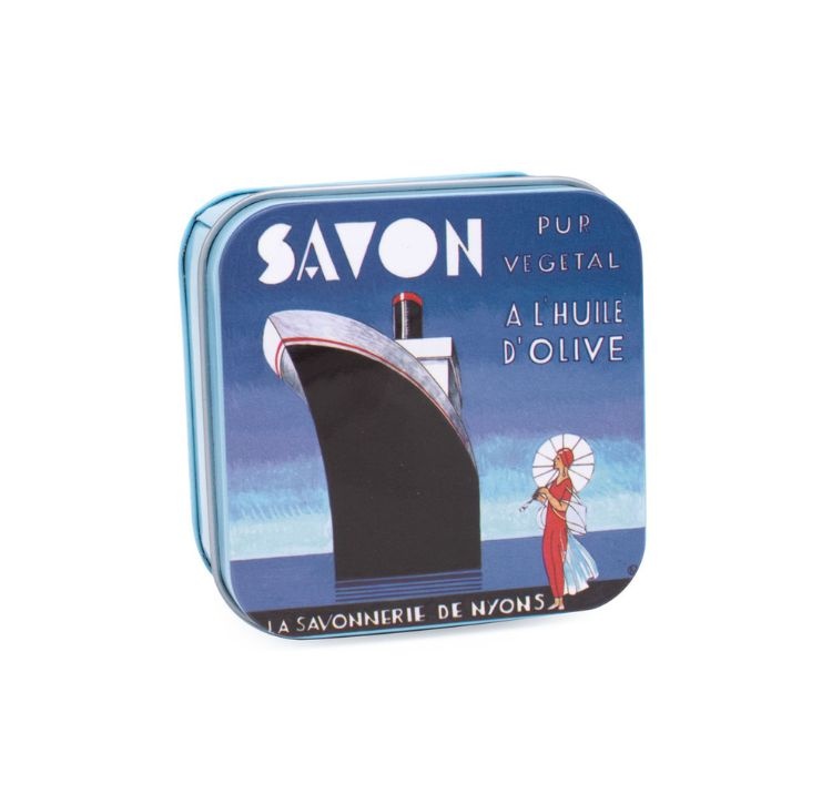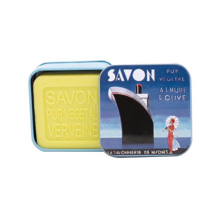 En väldoftande fast tvål med frisk och upplyftande doft av verbena, förpackad i en dekorativ plåtask med maritimt motiv. Tvålen är berikad med sheasmör och olivolja från Nyons, vilket hjälper till att vårda och mjukgöra huden vid varje tvätt.