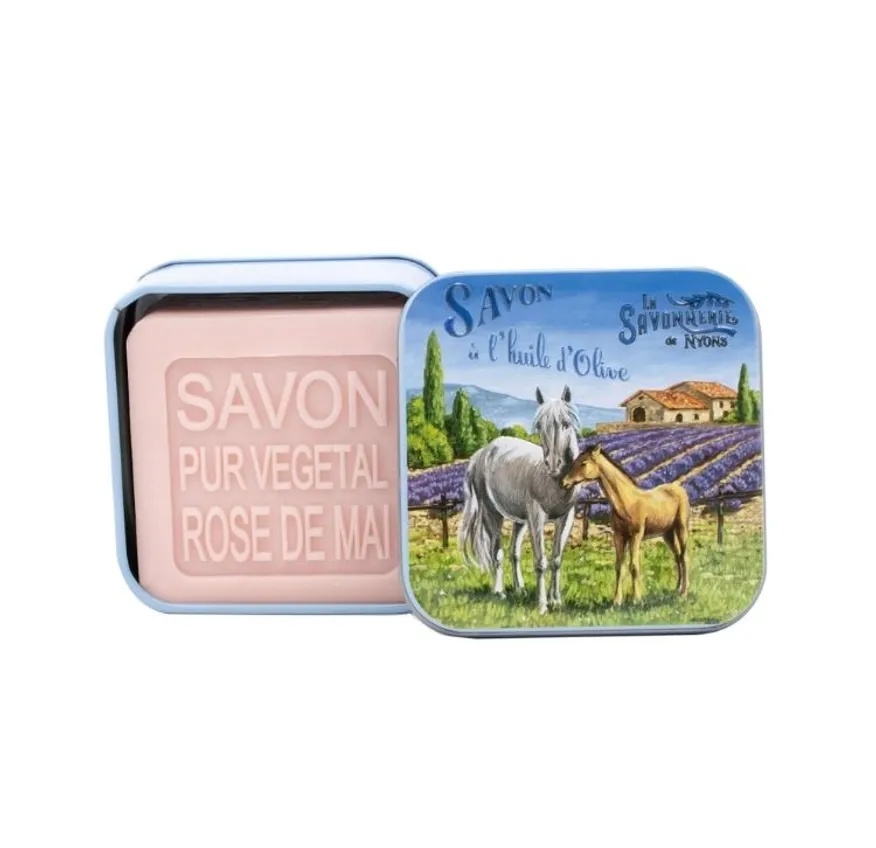 Marseille tvål i plåtask Hästar – ros, 100 g