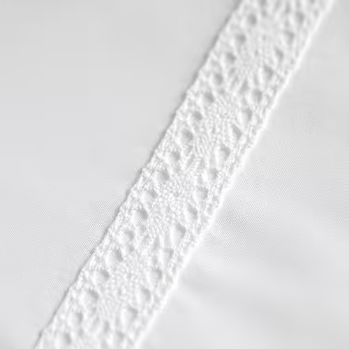 Örngottets framsidan har spetsdetalj. Baksidan är helt vit. Produkten är OEKO-TEX certifierad.