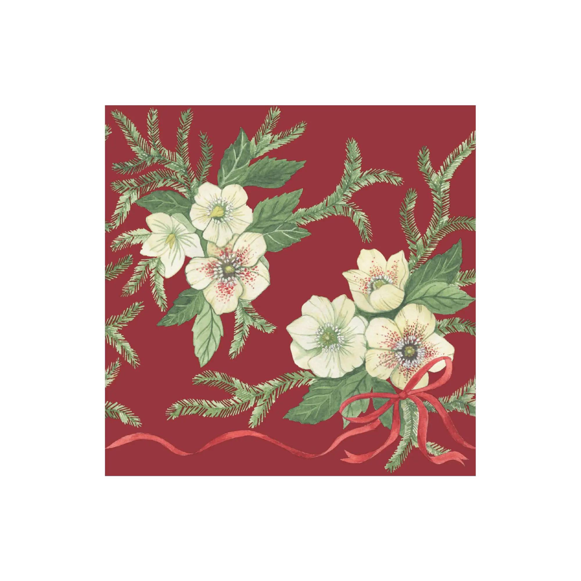 Ett blomstrande samarbete med konstnären och mönsterskaparen Hanna Wendelbo. Julrosmotivet sprider en känsla av tradition och festlighet, perfekt för dukningar i juletid. Den djupt vinröda färgen winery red ger servetten ett textilt uttryck som förhöjer både vardag och fest.