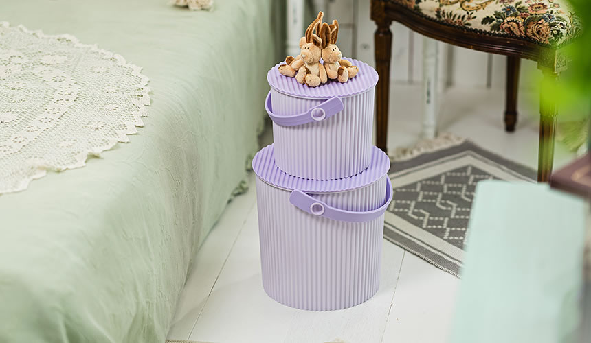Tillverkad av hållbar, våtrumssäker plast med strukturerad, räfflad yta för greppvänlighet. Stabil bärhandtag och ett lock som håller innehållet på plats och skyddar mot damm och smuts.