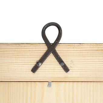 Spegellampett efter förlaga från 1920-talet med listhyvlat ramverk. Glasad med handblåst spegelglas. Tunt bakstycke av trä. Ljusarm av linoljebränt smide och upphängningsögla i järn.