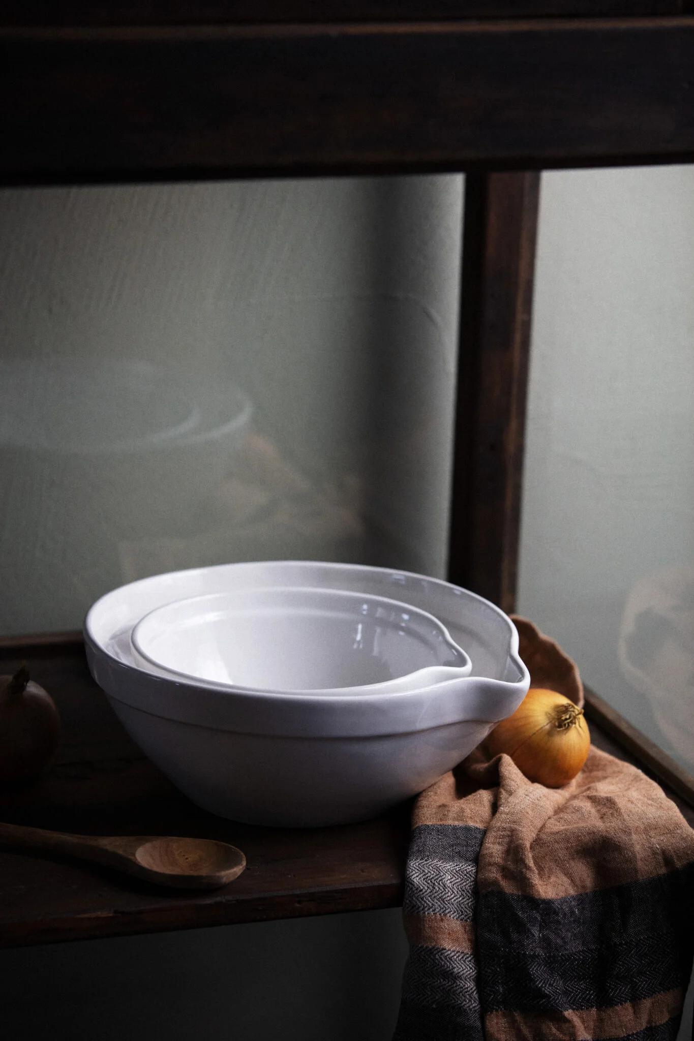 En vacker och funktionell spillkum i stengods från Olsson & Jensen. Skålen kombinerar tidlös design med praktisk användning och passar lika bra till bakning och matlagning som till servering.