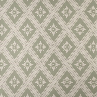 Tidstypisk tapet från slutet av 1800-talet i mild grön ton med beige botten. Tapeten är en återskapning från ett gammalt tapetfragment med okänt ursprung. Det enkla men detaljrika rutmönstret passar både i äldre hus och i en mer modern miljö.