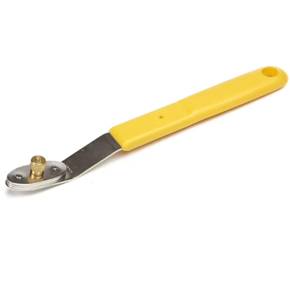 Denna tapetkniv i stål är utformad för exakt skärning av tapet, väv, folie och vinyl. Det vinklade metallhuvudet ger god kontroll vid arbete längs kanter och i hörn. Kniven levereras med distansbrickor och mässingsmutter, vilket gör det enkelt att justera bladets skärlängd – särskilt praktiskt vid överlappningar och precisionsjobb.