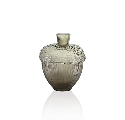 Vacker munblåst glasvas formad som ett ekollon – en symbol för styrka och växande. Vasen är tillverkad i Vadstena av skickliga glasblåsare hos Vas Vitreum och har en vacker struktur som fångar ljuset på ett levande sätt.