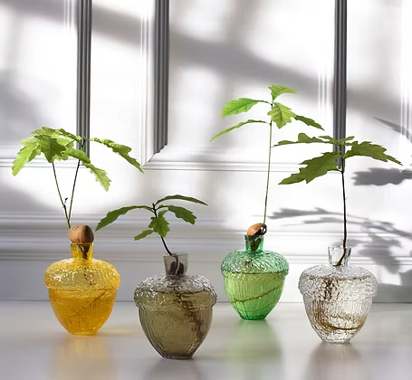 Ekollonvasen är perfekt för ekollon och sticklingar som ska gro, men lika fin med en enkel kvist eller snittblomma. Finns i flera färger som kan kombineras i grupp för ett dekorativt uttryck.